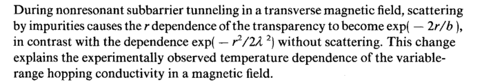 During nonresonant subbarrier tunneling in a transverse magnetic field, scattering by impurities causes the r dependence of the transparency to become exp( — 2r/b ), in contrast with the dependence exp( — τ^/ΐλ 2) without scattering. This change explains the experimentally observed temperature dependence of the variable-range hopping conductivity in a magnetic field.