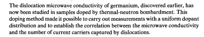The dislocation microwave conductivity of germanium, discovered earlier, has now been studied in samples doped by thermal-neutron bombardment. This doping method made it possible to carry out measurements with a uniform dopant distribution and to establish the correlation between the microwave conductivity and the number of current carriers captured by dislocations.