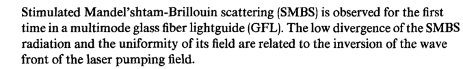 Stimulated MandePshtam-Brillouin scattering (SMBS) is observed for the first time in a multimode glass fiber lightguide (GFL). The low divergence of the SMBS radiation and the uniformity of its field are related to the inversion of the wave front of the laser pumping field.