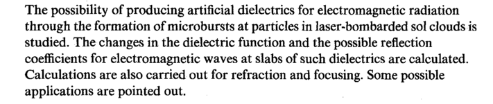 The possibility of producing artificial dielectrics for electromagnetic radiation through the formation of microbursts at particles in laser-bombarded sol clouds is studied. The changes in the dielectric function and the possible reflection coefficients for electromagnetic waves at slabs of such dielectrics are calculated. Calculations are also carried out for refraction and focusing. Some possible applications are pointed out.