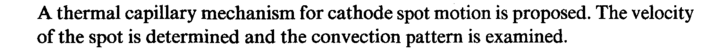A thermal capillary mechanism for cathode spot motion is proposed. The velocity of the spot is determined and the convection pattern is examined.