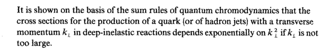 It is shown on the basis of the sum rules of quantum chromodynamics that the cross sections for the production of a quark (or of hadron jets) with a transverse momentum kL in deep-inelastic reactions depends exponentially on к \ if kL is not too large.