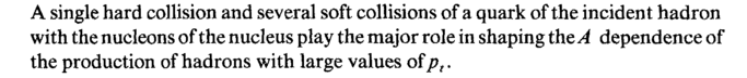 A single hard collision and several soft collisions of a quark of the incident hadron with the nucleons of the nucleus play the major role in shaping the A dependence of the production of hadrons with large values of pt.