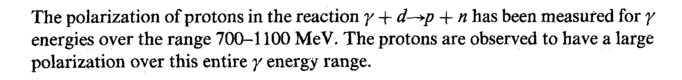 The polarization of protons in the reaction γ -f d-^p + η has been measured for γ energies over the range 700-1100 MeV. The protons are observed to have a large polarization over this entire γ energy range.