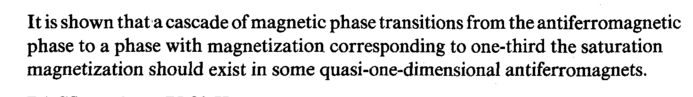 It is shown that a cascade of magnetic phase transitions from the antiferromagnetic phase to a phase with magnetization corresponding to one-third the saturation magnetization should exist in some quasi-one-dimensional antiferromagnets.