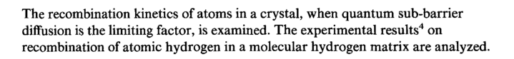 The recombination kinetics of atoms in a crystal, when quantum sub-barrier diffusion is the limiting factor, is examined. The experimental results4 on recombination of atomic hydrogen in a molecular hydrogen matrix are analyzed.