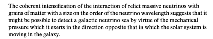 The coherent intensification of the interaction of relict massive neutrinos with grains of matter with a size on the order of the neutrino wavelength suggests that it might be possible to detect a galactic neutrino sea by virtue of the mechanical pressure which it exerts in the direction opposite that in which the solar system is moving in the galaxy.