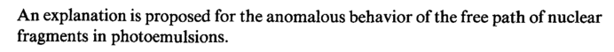 An explanation is proposed for the anomalous behavior of the free path of nuclear fragments in photoemulsions.