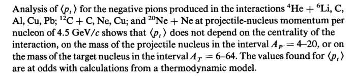 Analysis of {pt) for the negative pions produced in the interactions 4He + 6Li, C, Al, Cu, Pb; I2C + C, Ne, Cu; and 20Ne + Ne at projectile-nucleus momentum per nucleon of 4.5 GeV/c shows that {pt) does not depend on the centrality of the interaction, on the mass of the projectile nucleus in the interval AP — 4—20, or on the mass of the target nucleus in the interval^ = 6-64. The values found for {pt) are at odds with calculations from a thermodynamic model.