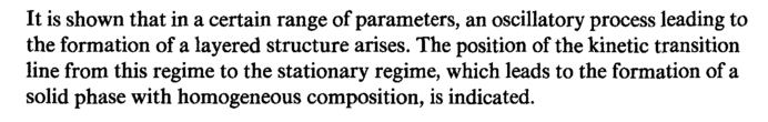 It is shown that in a certain range of parameters, an oscillatory process leading to the formation of a layered structure arises. The position of the kinetic transition line from this regime to the stationary regime, which leads to the formation of a solid phase with homogeneous composition, is indicated.