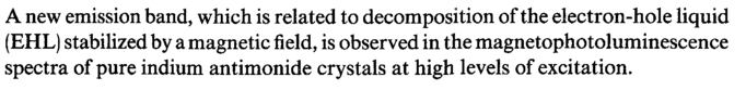 A new emission band, which is related to decomposition of the electron-hole liquid (EHL) stabilized by a magnetic field, is observed in the magnetophotoluminescence spectra of pure indium antimonide crystals at high levels of excitation.