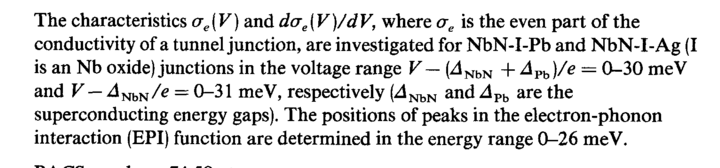 The characteristics ae{V) and dae[V)/dV, where ae is the even part of the conductivity of a tunnel junction, are investigated for NbN-I-Pb and NbN-I-Ag (I is an Nb oxide) junctions in the voltage range V — (ANbN + APb)/e = 0-30 meV and V — Δ NbN /e = 0-31 meV, respectively (4№Ν and AVb are the superconducting energy gaps). The positions of peaks in the electron-phonon interaction (EPI) function are determined in the energy range 0-26 meV.