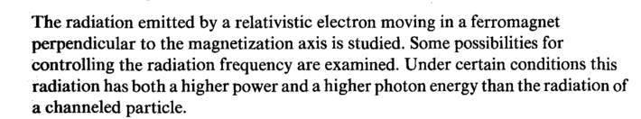 The radiation emitted by a relativistic electron moving in a ferromagnet perpendicular to the magnetization axis is studied. Some possibilities for controlling the radiation frequency are examined. Under certain conditions this radiation has both a higher power and a higher photon energy than the radiation of a channeled particle.
