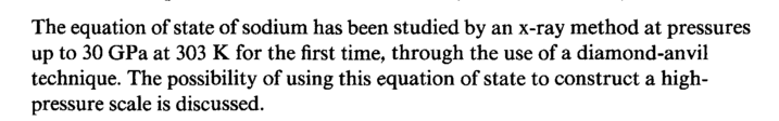 The equation of state of sodium has been studied by an x-ray method at pressures up to 30 GPa at 303 К for the first time, through the use of a diamond-anvil technique. The possibility of using this equation of state to construct a high-pressure scale is discussed.