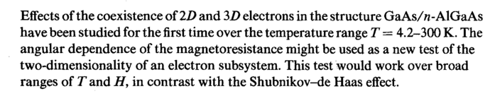 Effects of the coexistence of ID and 3D electrons in the structure GaAs/n-AlGaAs have been studied for the first time over the temperature range Τ = 4.2-300 К. The angular dependence of the magnetoresistance might be used as a new test of the two-dimensionality of an electron subsystem. This test would work over broad ranges of Τ and H, in contrast with the Shubnikov-de Haas effect.