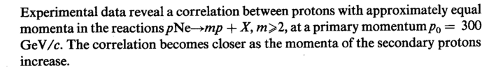 Experimental data reveal a correlation between protons with approximately equal momenta in the reactionsрШ->тр + X, m>2, at a primary momentumpQ = 300 GeV/c. The correlation becomes closer as the momenta of the secondary protons increase.