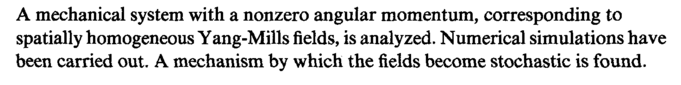 A mechanical system with a nonzero angular momentum, corresponding to spatially homogeneous Yang-Mills fields, is analyzed. Numerical simulations have been carried out. A mechanism by which the fields become stochastic is found.