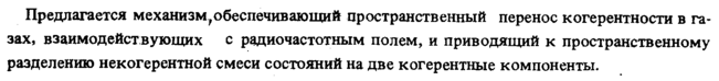 Предлагается механизм^ обеспечивающий пространственный перенос когерентности в газах, взаимодействующих с радиочастотным полем, и приводящий к пространственному разделению некогерентной смеси состояний на две когерентные компоненты.