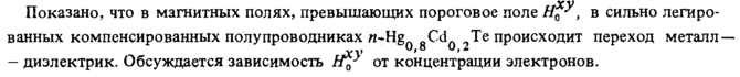 Показано, что в магнитных полях, превышающих пороговое поле #f у, в сильно легированных компенсированных полупроводниках «*HgA QCd Те происходит переход металл — VI. °»8 °>2 — диэлектрик. Обсуждается зависимость от концентрации электронов.