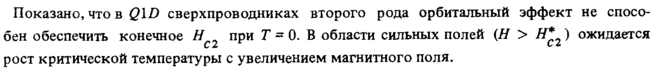 Показано, что в QID сверхпроводниках второго рода орбитальный эффект не способен обеспечить конечное #,2 при Τ = 0. В области сильных полей (Я > Н*2) ожидается рост критической температуры с увеличением магнитного поля.