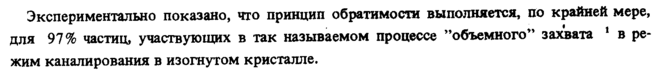 Экспериментально показано, что принцип обратимости выполняется, по крайней мере, для 97% частиц, участвующих в так называемом процессе "объемного** захвата 1 в режим каналирования в изогнутом кристалле.
