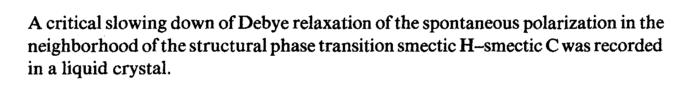A critical slowing down of Debye relaxation of the spontaneous polarization in the neighborhood of the structural phase transition smectic H-smectic С was recorded in a liquid crystal.