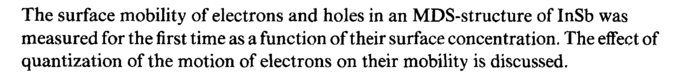 The surface mobility of electrons and holes in an MDS-structure of InSb was measured for the first time as a function of their surface concentration. The effect of quantization of the motion of electrons on their mobility is discussed.