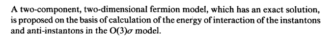 A two-component, two-dimensional fermion model, which has an exact solution, is proposed on the basis of calculation of the energy of interaction of the instantons and anti-instantons in the 0(3)σ model.