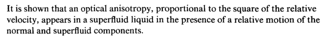 It is shown that an optical anisotropy, proportional to the square of the relative velocity, appears in a superfluid liquid in the presence of a relative motion of the normal and superfluid components.