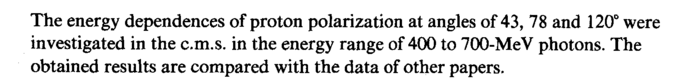 The energy dependences of proton polarization at angles of 43, 78 and 120° were investigated in the c.m.s. in the energy range of 400 to 700-MeV photons. The obtained results are compared with the data of other papers.