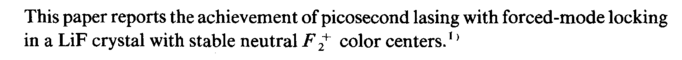 This paper reports the achievement of picosecond lasing with forced-mode locking in a LiF crystal with stable neutral F £ color centers.1}