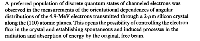 A preferred population of discrete quantum states of channeled electrons was observed in the measurements of the orientational dependences of angular distributions of the 4.9-MeV electrons transmitted through a 2-/xm silicon crystal along the (110) atomic planes. This opens the possibility of controlling the electron flux in the crystal and establishing spontaneous and induced processes in the radiation and absorption of energy by the original, free beam.