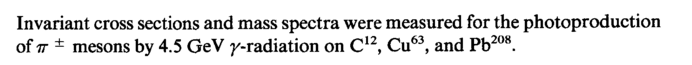 Invariant cross sections and mass spectra were measured for the photoproduction of 77± mesons by 4.5 GeV ^-radiation on C12, Cu63, and Pb208.