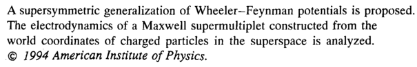 A supersymmetric generalization of Wheeler-Feynman potentials is proposed. The electrodynamics of a Maxwell supermultiplet constructed from the world coordinates of charged particles in the superspace is analyzed. © 1994 American Institute of Physics.