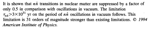 transitions in nuclear matter are suppressed by a factor of only 0.5 in comparison with oscillations in vacuum. The limitation т„