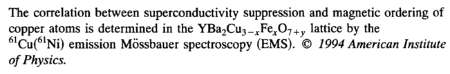 The correlation between superconductivity suppression and magnetic ordering of copper atoms is determined in the õ÷Á2óÉÚ_ÈòÅÌ07+Õ lattice by the 61Cu(61Ni) emission Mossbauer spectroscopy (EMS). © 1994 American Institute of Physics.