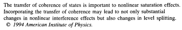 The transfer of coherence of states is important to nonlinear saturation effects. Incorporating the transfer of coherence may lead to not only substantial changes in nonlinear interference effects but also changes in level splitting. © 1994 American Institute of Physics.