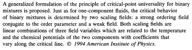 A generalized formulation of the principle of critical-point universality for binary mixtures is proposed. Just as for one-component fluids, the critical behavior of binary mixtures is determined by two scaling fields: a strong ordering field conjugate to the order parameter and a weak field. Both scaling fields are linear combinations of three field variables which are related to the temperature and the chemical potentials of the two components with coefficients that vary along the critical line. © 1994 American Institute of Physics.