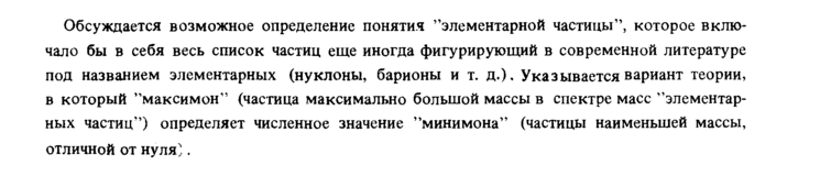 Обсуждается возможное определение понятия "элементарной частицы", которое включало бы в себя весь список частиц еще иногда фигурирующий в современной литературе под названием элементарных (нуклоны, барионы и т. д.). Указывается вариант теории, в который "максимой" (частица максимально большой массы в спектре масс "элементарных частиц") определяет численное значение "минимона" (частицы наименьшей массы, отличной от нуля'.