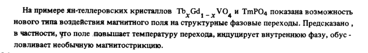 На примере ян-теллеровских кристаллов Tb^Gdj _^νθ4 и TmP04 показана возможность нового типа воздействия магнитного поля на структурные фазовые переходы. Предсказано , в частности, что поле повышает температуру перехода, индуцирует внутреннюю фазу, обус -ловливает необычную магнитострикцию.