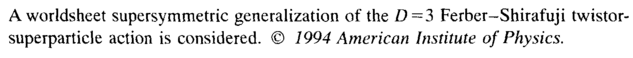 Aworldsheet supersymmetric generalization of the D=3 Ferber-Shirafuji twistor-superparticle action is considered. © 1994 American Institute of Physics.