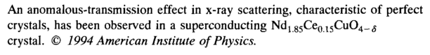 An anomalous-transmission effect in x-ray scattering, characteristic of perfect crystals, has been observed in a superconducting Ndj 85Се015СиО4_<5 crystal. © 1994 American Institute of Physics.