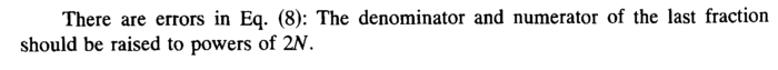 There are errors in Eq. (8): The denominator and numerator of the last fraction should be raised to powers of