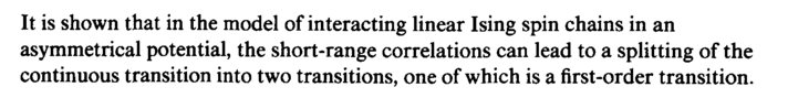 It is shown that in the model of interacting linear Ising spin chains in an asymmetrical potential, the short-range correlations can lead to a splitting of the continuous transition into two transitions, one of which is a first-order transition.