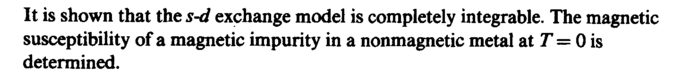 exchange model is completely integrable. The magnetic susceptibility of a magnetic impurity in a nonmagnetic metal at
