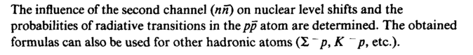The influence of the second channel (nh~) on nuclear level shifts and the probabilities of radiative transitions in the pp atom are determined. The obtained formulas can also be used for other hadronic atoms (Σ ~ρ, Κ ρ, etc.).