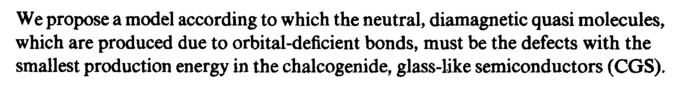 We propose a model according to which the neutral, diamagnetic quasi molecules, which are produced due to orbital-deficient bonds, must be the defects with the smallest production energy in the chalcogenide, glass-like semiconductors (CGS).