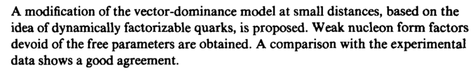 A modification of the vector-dominance model at small distances, based on the idea of dynamically factorizable quarks, is proposed. Weak nucleon form factors devoid of the free parameters are obtained. A comparison with the experimental data shows a good agreement.