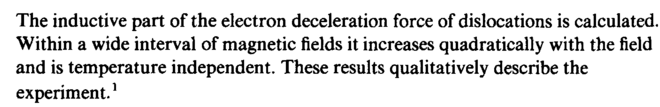The inductive part of the electron deceleration force of dislocations is calculated. Within a wide interval of magnetic fields it increases quadratically with the field and is temperature independent. These results qualitatively describe the experiment.1