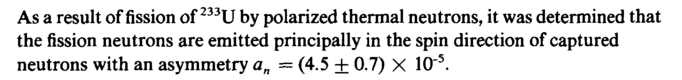 As a result of fission of 233U by polarized thermal neutrons, it was determined that the fission neutrons are emitted principally in the spin direction of captured neutrons with an asymmetry an = (4.5 ± 0.7) X 10~5.